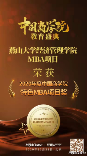 MBA教育将延续“规格严格、功夫到家”的优良传统,发扬奋斗基因、工匠精神、卓越品质和家国情怀,聚焦中国卓越商科教育发展趋势,聚合学校先进制造业学科特色优势,对接京津冀先进制造业产业链,建立服务京津冀区域企业转型发展的高端商务智库,开拓进取,锐意创新,为中国MBA教育事业的高质量发展贡献燕大力量!
