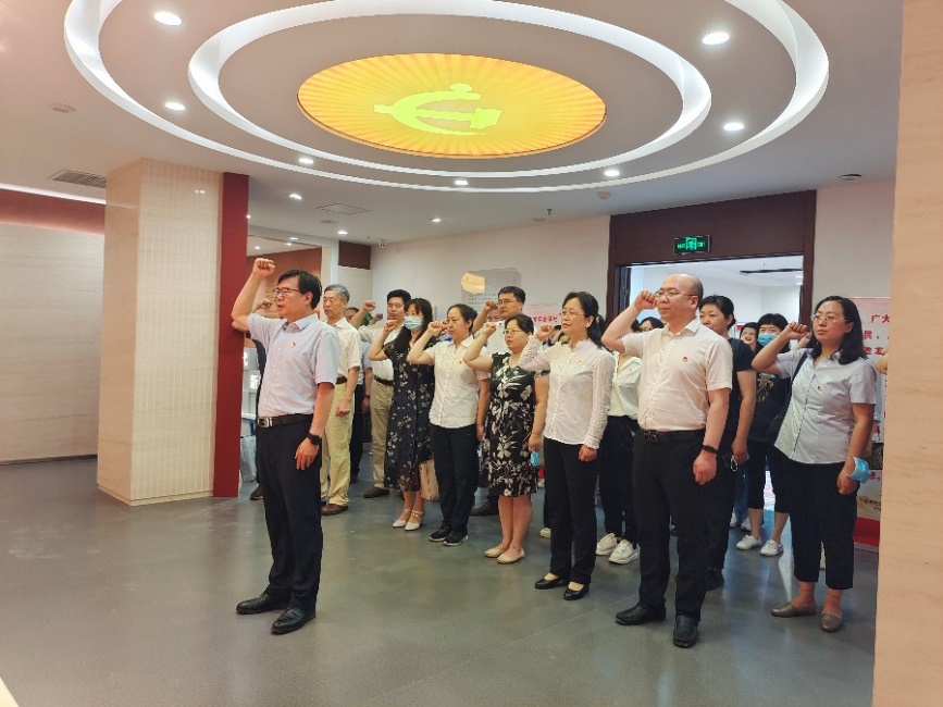 在宣誓厅,学院党委书记张振华带领全体党员重温入党誓词,检视入党初心、强化党员意识。通过“红色历程厅”、“精神谱画厅”、“风纪镜鉴厅”、“英模礼赞厅”四个展厅再一次深入学习了中国共产党百年的光辉历程、一代代党员薪火相传的精神血脉。每一件真切的史实,都会引导师生唤起波澜壮阔的历史记忆,感受到伟大建党精神的洗礼。