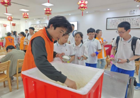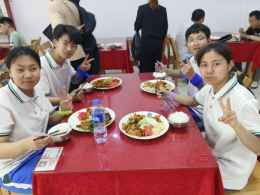 午餐时间,师生们来到宝威体育 教职工食堂,学生们自助选餐、志愿者全程协助,手语交流、眼神互动中彼此情感进一步升华,他们用甜美的笑容传递着“美味无需翻译,爱心自有共鸣”。